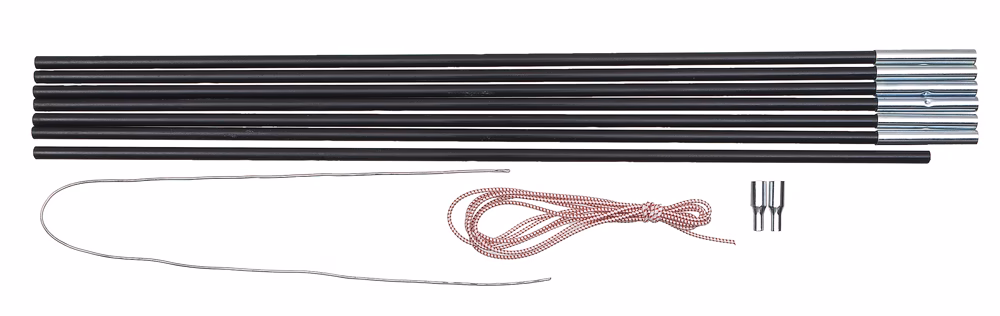 Ersatzstange für Zelte. Aus Fiberglas mit mehreren Segmenten. Komplett mit Gummiseil und Endtips.