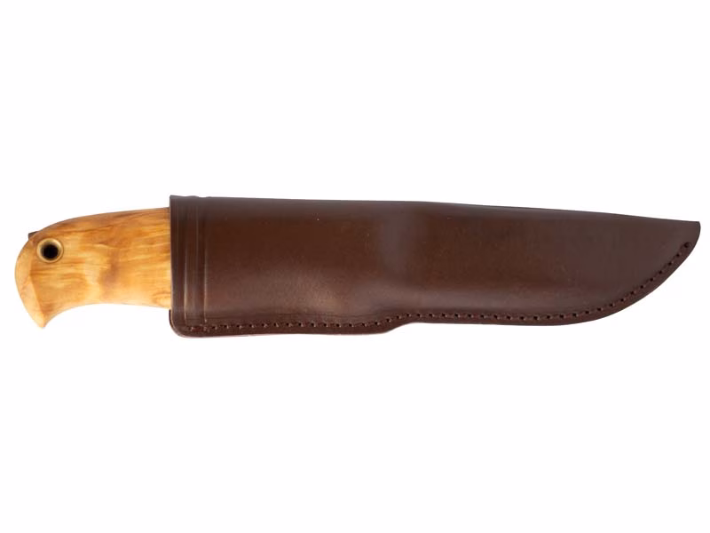 Der bekannte Outdoor Experte Les Stroud hat das von Helle in Norwegen produzierte Gürtelmesser WABAKIMI designt und damit gleichzeitig ein robustes Allround-Messer entworfen. Die 3 mm starke Drop Point Klinge aus dem für Helle typischen, rostfreien Dreilagenstahl wird mit zwei robusten Nieten im Griff fixiert. Der ergonomische Griff mit seinen Schalen aus Maserbirke verfügt über eine praktische Fangriemenöse. Eine sauber verarbeitete Köcher-Gürtelscheide aus braunem Leder ist im Lieferumfang bereits enthalten.