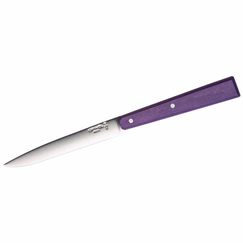 Tafelmesser aus der Opinel Messerserie Bon Appetit. Die 11 cm lange, glatte Klinge ist aus rostfreiem Stahl 12C27 gefertigt. Damit die Qualität erhalten bleibt, sollte das Messer nur von Hand gereinigt werden.