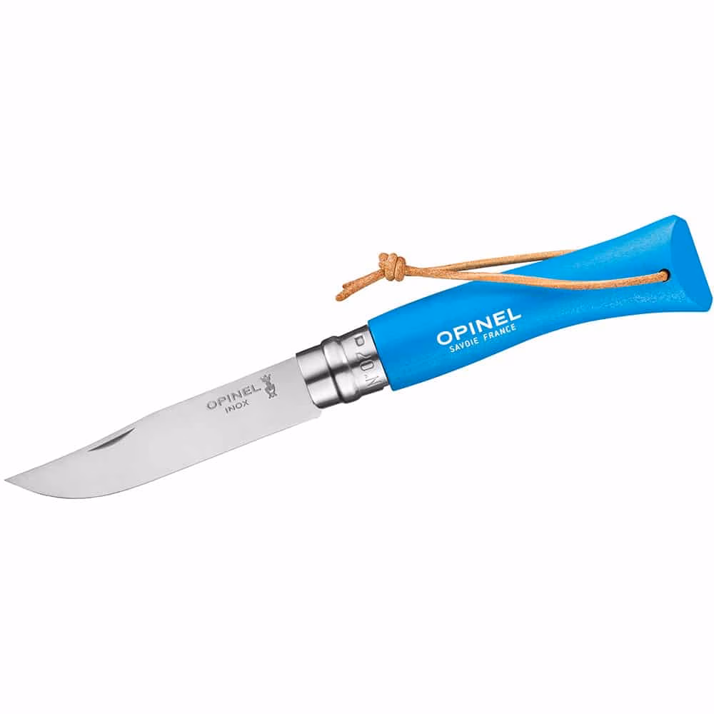 Opinel Taschenmesser No 07 COLORAMA, blau, rostfrei, Kordel – Gravur auf der Klinge möglich