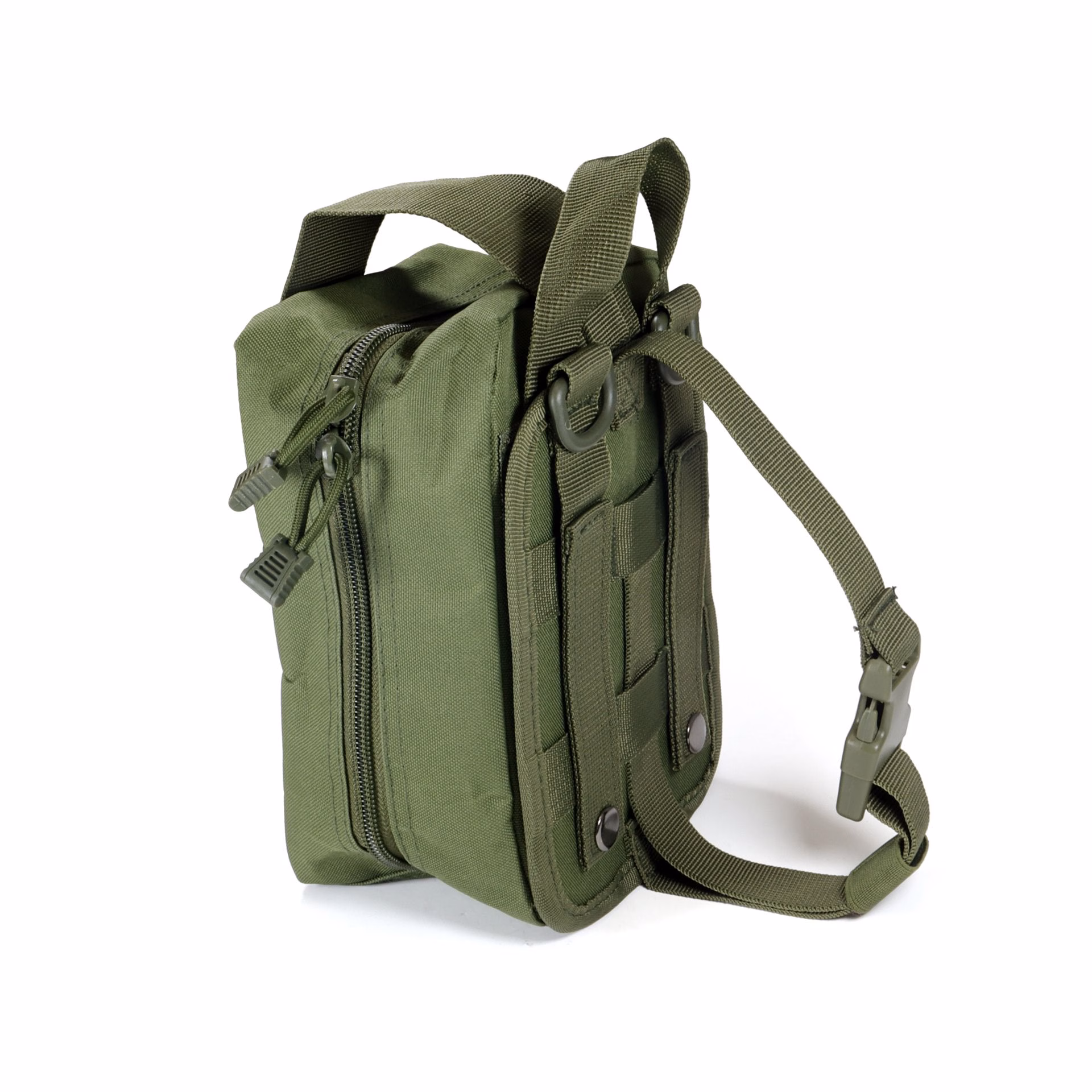 Unsere taktische Tasche mit MOLLE-Befestigungssystem ist wasserabweisend und schützt Ihre Ausrüstung zuverlässig vor Nässe. Das MOLLE-System und die D-Ringe ermöglichen eine einfache Befestigung an weiteren Ausrüstungsgegenständen. Durch den Kompressionsriemen mit Schnalle kann das Volumen der Tasche schnell an den Inhalt angepasst werden. Mit den Gürtelschlaufen lässt sie sich bequem befestigen und die zusätzlichen Klettflächen an der Vorder- und Rückseite bieten weitere Befestigungsmöglichkeiten. Die Tasche verfügt über eine durchdachte Innenaufteilung zur optimalen Organisation Ihrer Ausrüstung. Im Lieferumfang ist ein abnehmbares Sanitätskreuz enthalten.